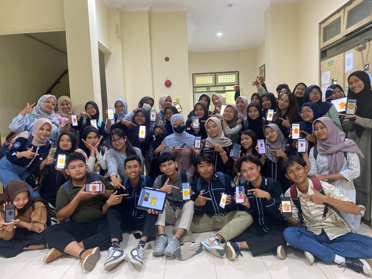 Sebagai objek latihan, mahasiswa menggambar kepik emas (Aspidomorpha sanctaecrucis), sebuah spesies serangga dengan karakteristik bentuk dan refleksi warna yang unik. Proses ini membantu mahasiswa melatih kemampuan mengamati morfologi organisme secara detail, sekaligus memahami bagaimana visualisasi dapat memperkuat pemahaman konsep struktur dan fungsi dalam biologi.